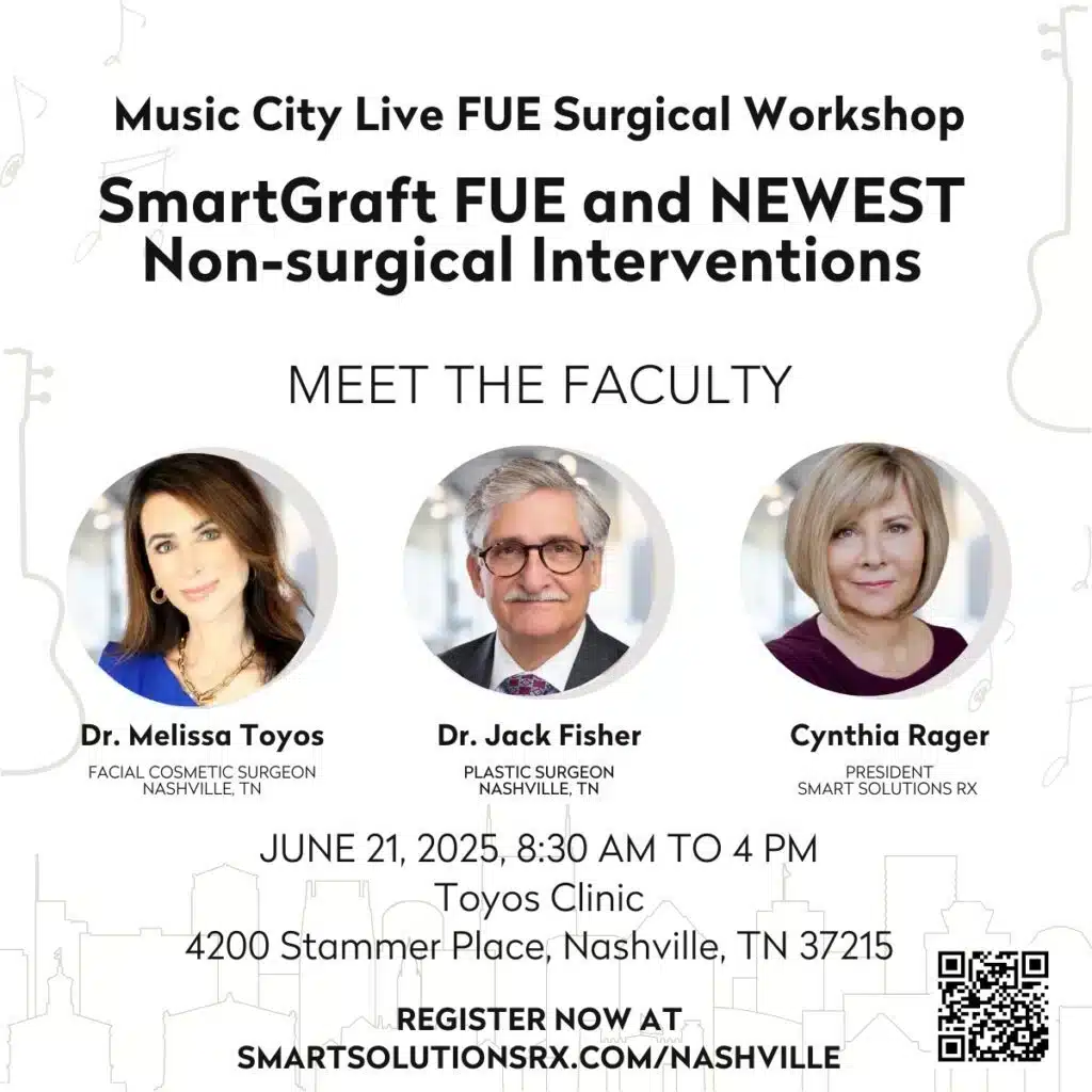 Join us in the heart of Nashville for a dynamic, hands-on educational event where cutting-edge FUE technology meets next-generation non-invasive therapies. The Music City Live FUE Surgical Workshop is an exclusive, full-day training experience designed for both new and experienced hair restoration professionals.